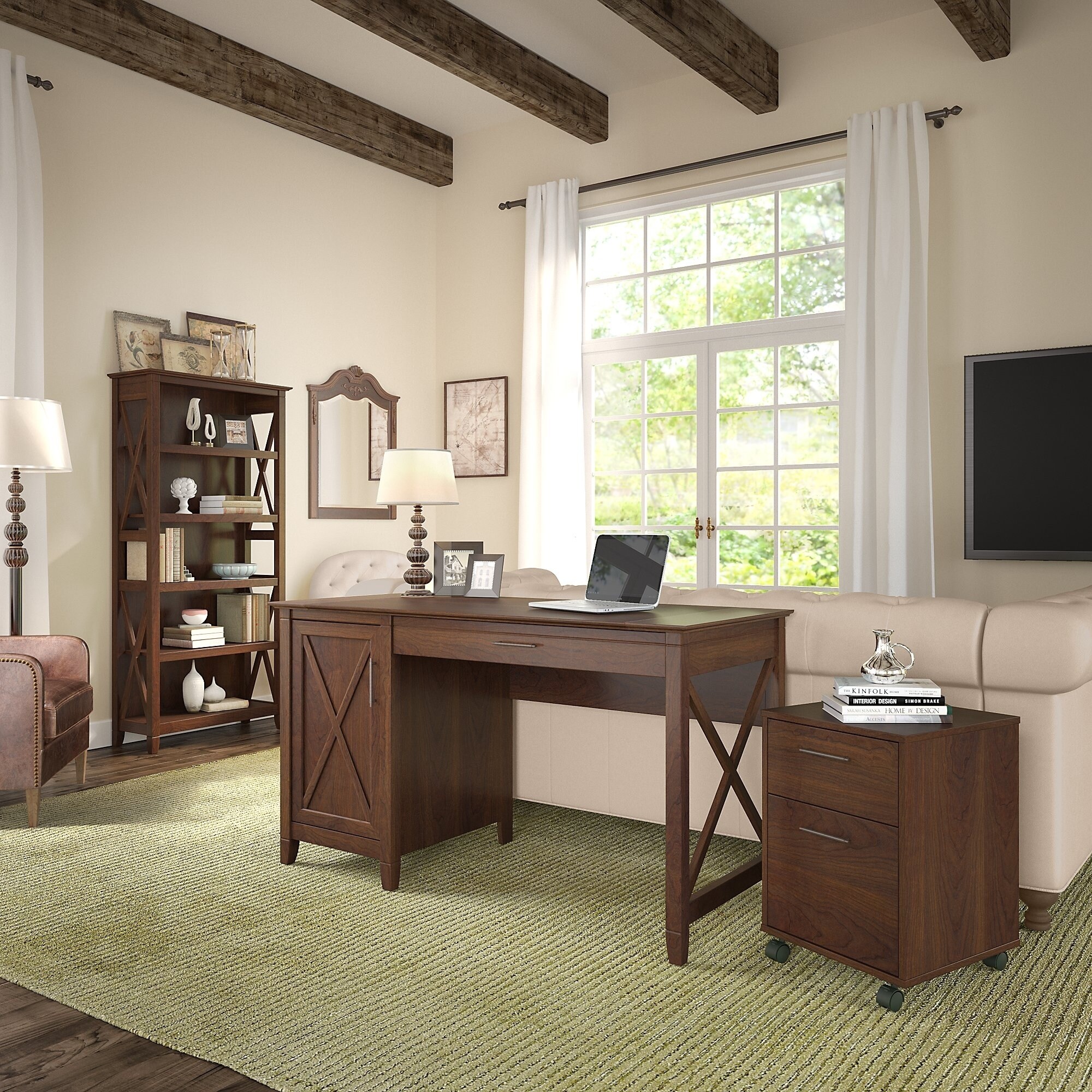 Bush Furniture Key West 48W Writing Desk in Bing Cherry ... from media.cymaxstores.com The convenient pull out keyboard drawer with a flip down front folds up neatly. Let the key west collection turn your home or office into an island escape. The 54w x 24d work surface offers.