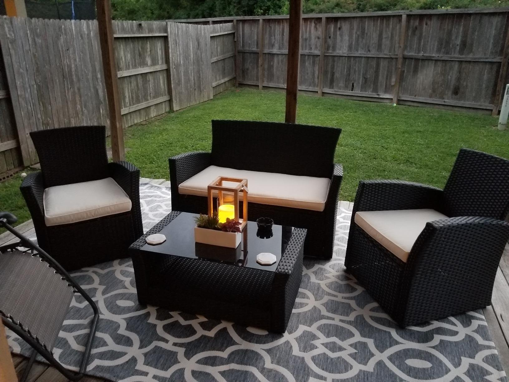 View Goplus 4 Pc Rattan Patio Furniture Set Assembly PNG. What's more the table features a tempered glass top.it is perfect for the pool side. Goplus 5 pcs patio furniture set chair & fire place stove fire pit steel frame (310927162250).